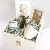 * Voga Gift Design hediye kutusu içi kırpık kağıt ile, dışı ise iç ürün tasarımına uygun kurdele, kuru çiçek ve “For You” askılı etiket ile süslenmektedir.
